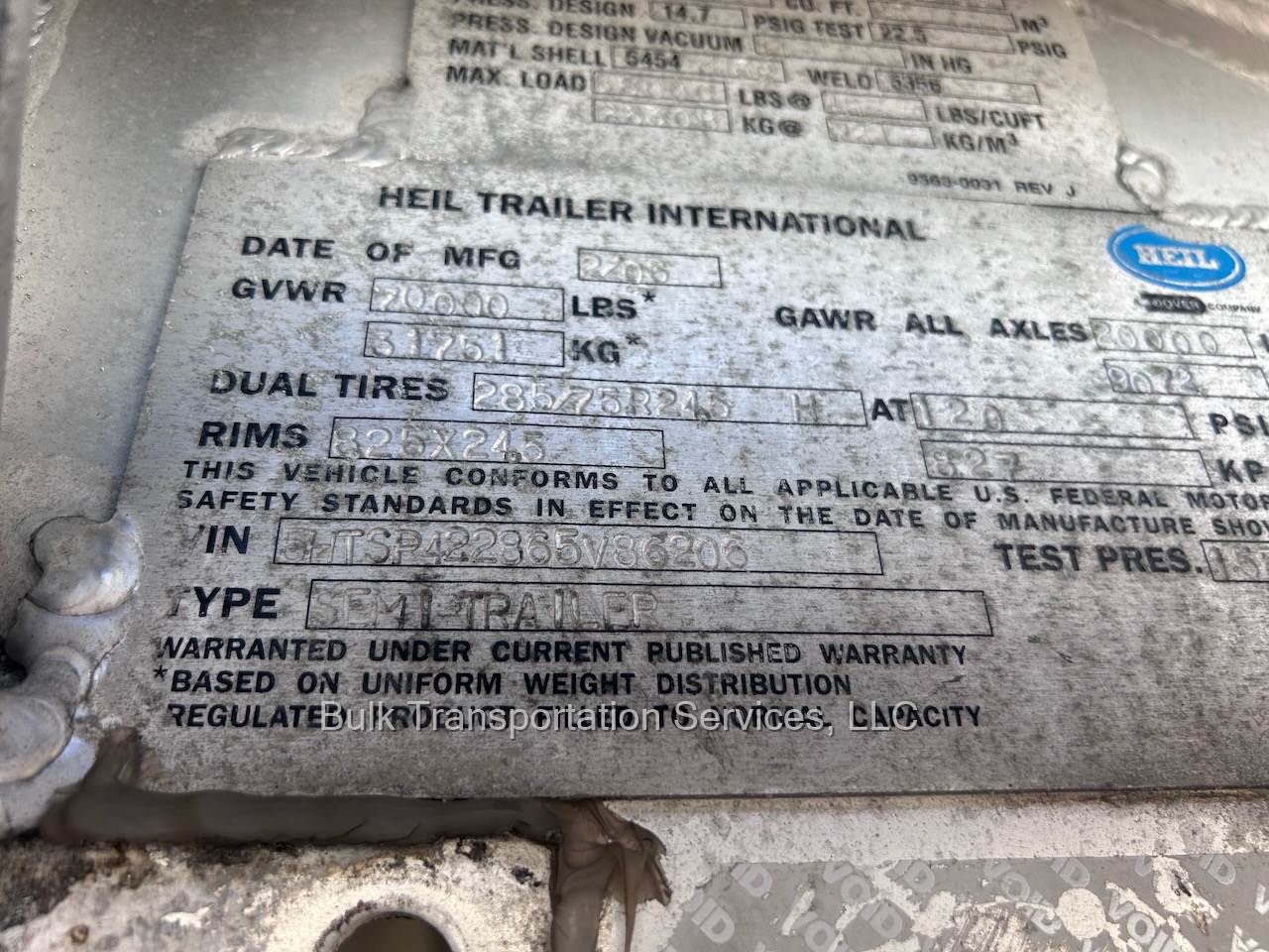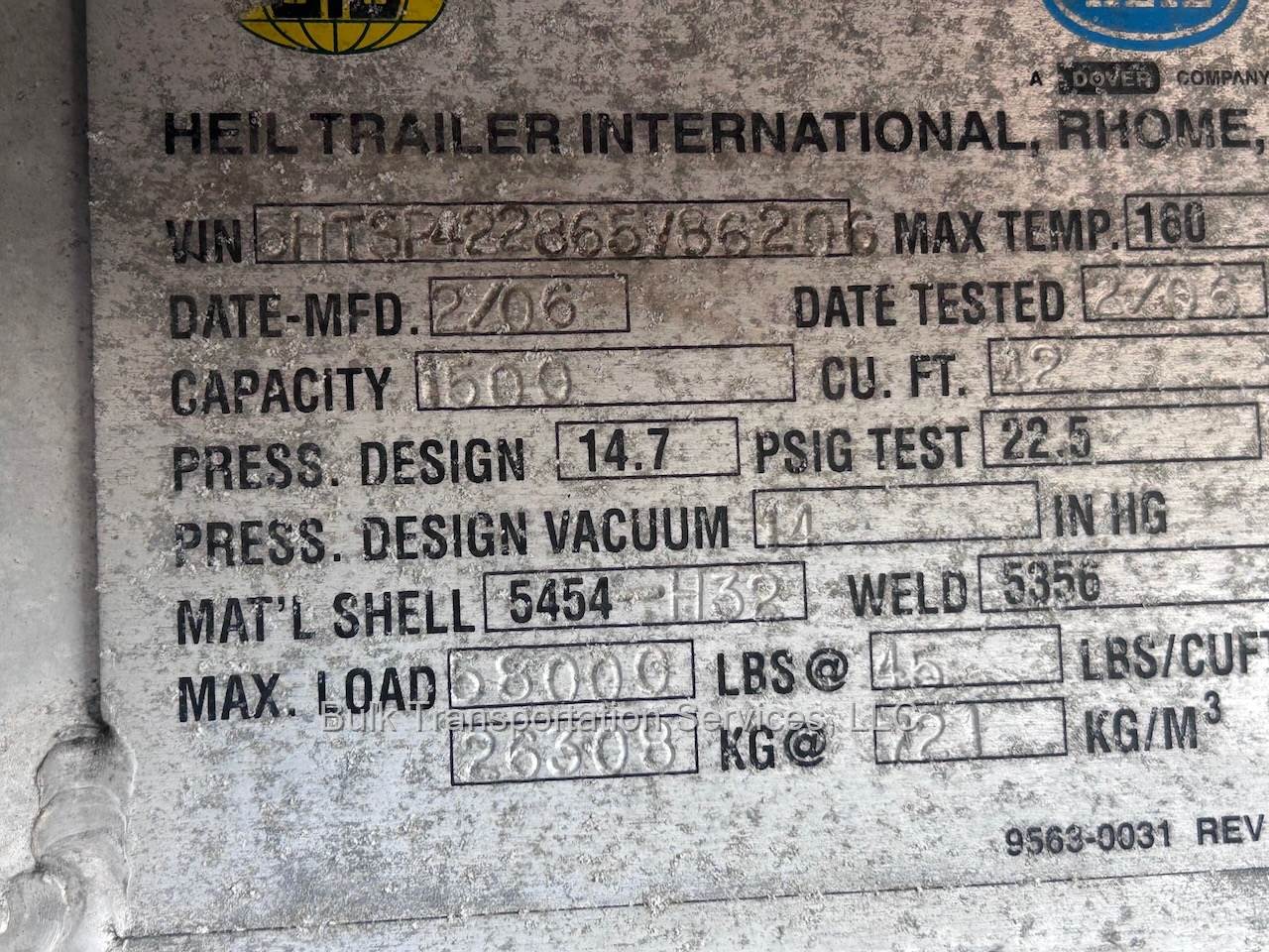 2006 Heil 1500 Cube Vacuum Pneumatic. Clean inside plastic service. 4" rear fill line. One Hose Carrier. 3" air inlet line. Fill line diverter has been removed. Spring Ride tandem.. Straight axles. Swing-away hopper tees. Lo Pro 22.5 tires on alum wheel hub pilot wheels. Available Immediately. FOB SC.